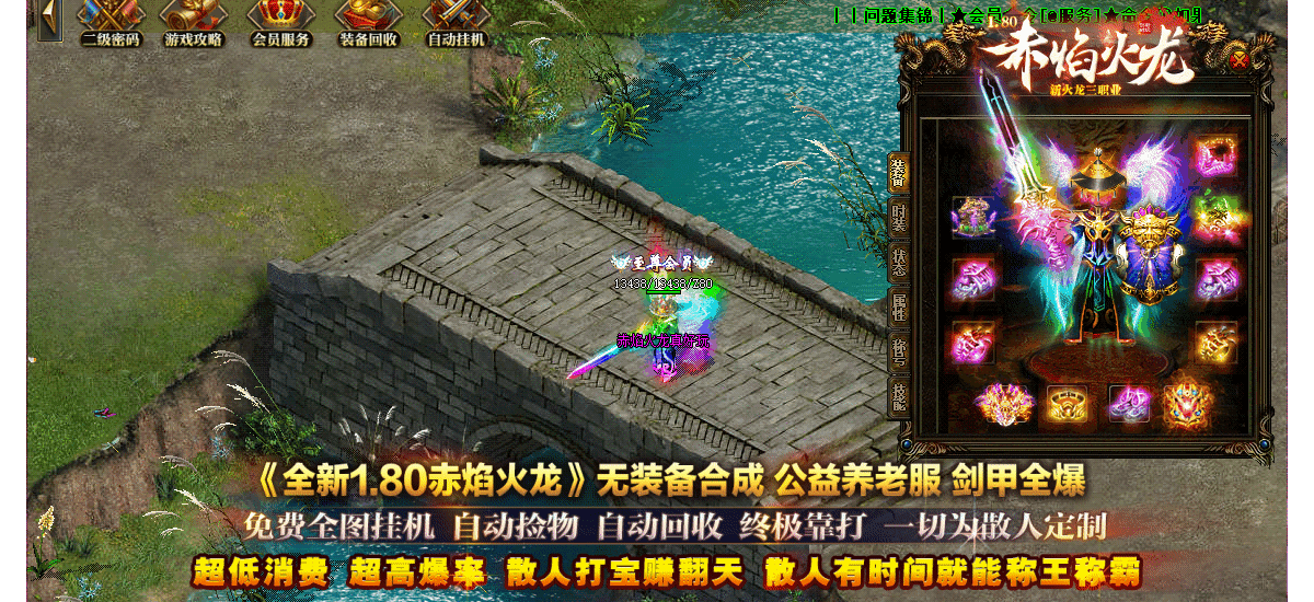 【游戏特色】:本服终极全靠打无合成,一个赞助可打通关。